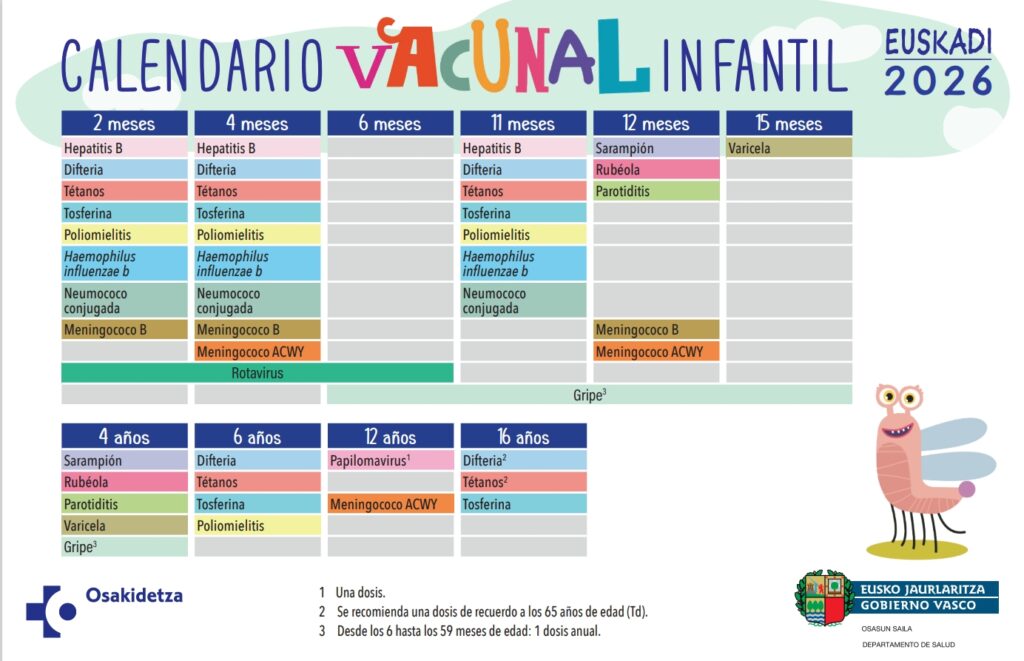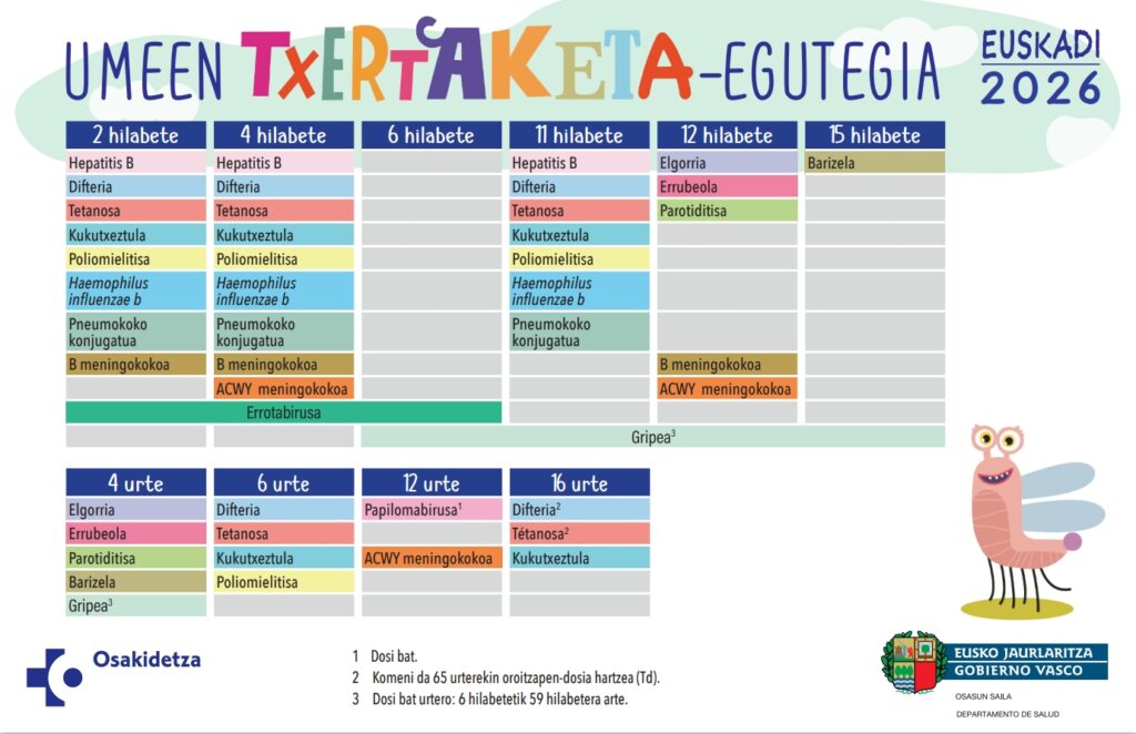 Euskadin indarrean dagoen umeen txertaketa-egutegi eguneratua zein aurrekoak hemen kontsulta daitezke.